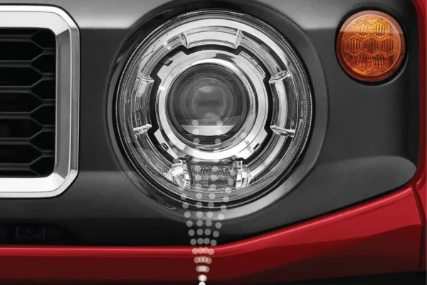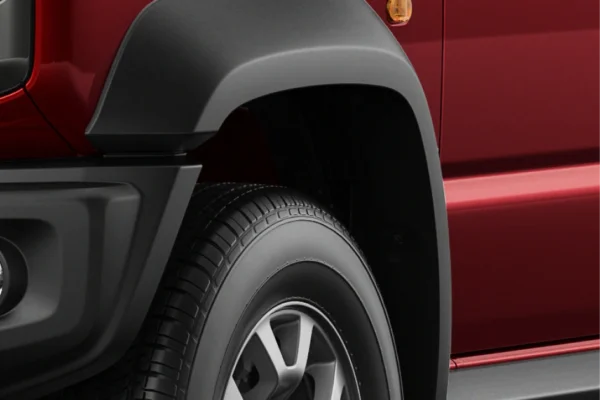 Kesan retro masih sangat terjaga dengan lampu depan bentuk bulat seperti pendahulunya, meski sudah memakai LED. Lampu sein dan lampu kabutnya juga bulat, meski dengan ukuran lebih kecil. Beralih ke samping, desain Suzuki Jimny terasa simpel, namun sangat berkarakter. Overfender plastik solid memberi kesan tangguh dan gahar dari SUV mungil ini.
